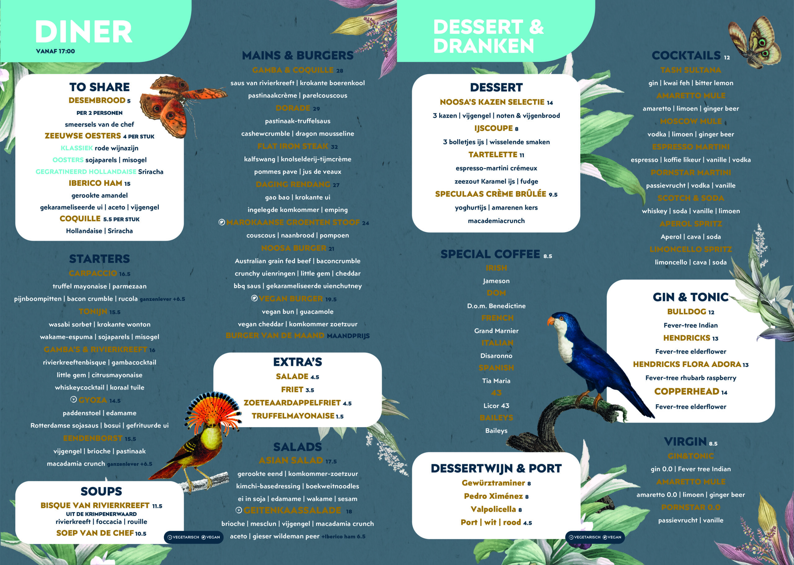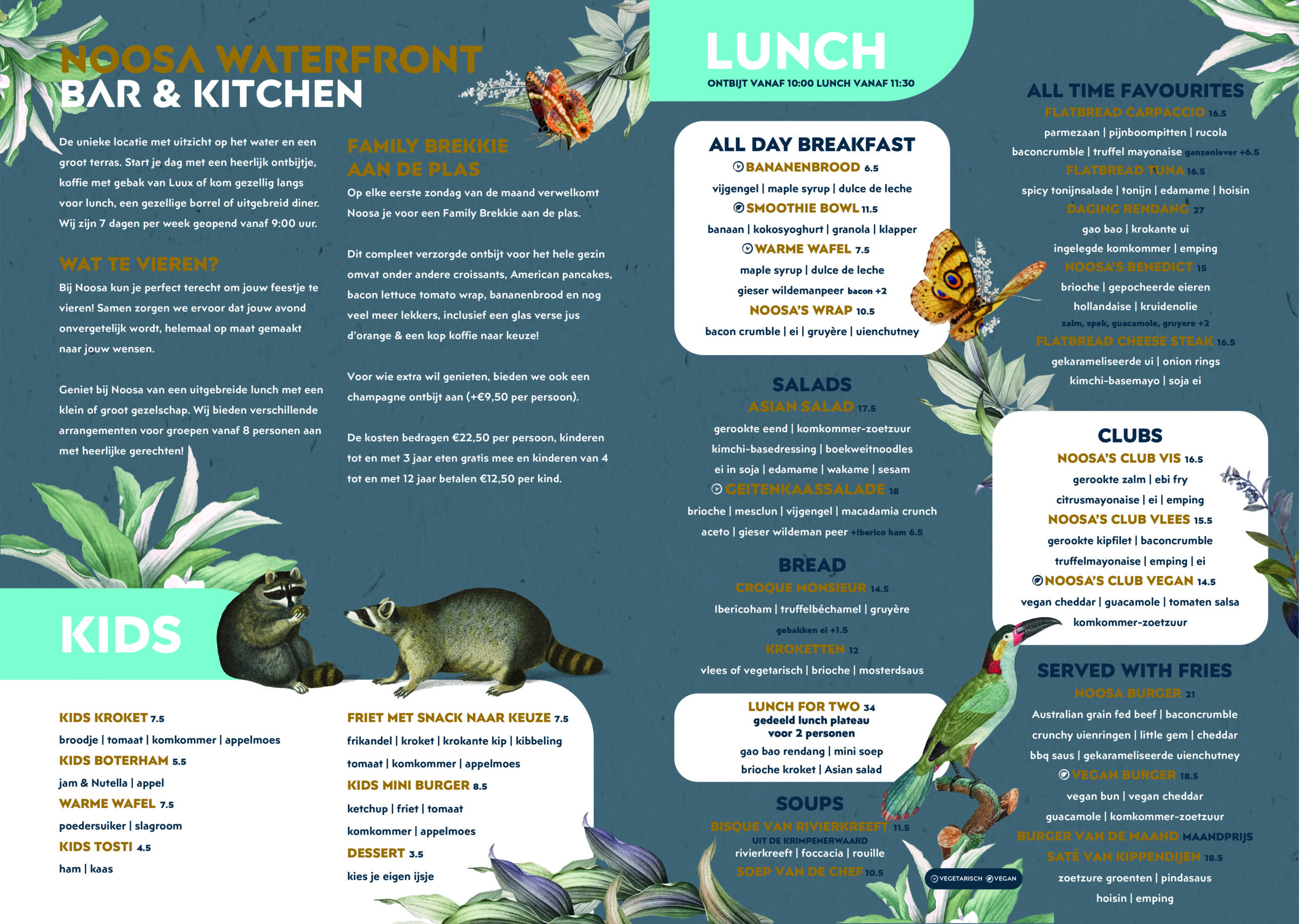 Bij Noosa draait alles om genieten. Van een zonnige lunch tot een gezellige borrel of uitgebreid diner β ons menu is een culinaire roadtrip langs smaken van dichtbij en ver weg. Alles vers, alles met liefde.